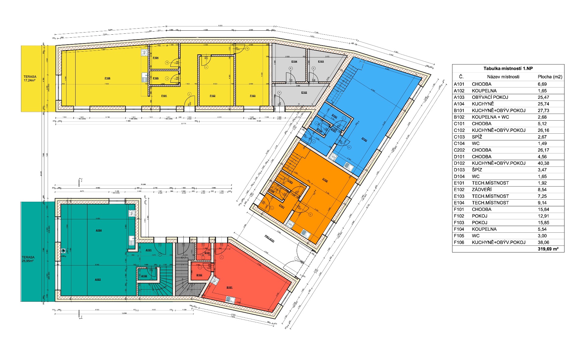 Dům 1 - byt F přízemní 3+kk - 96,28 m2