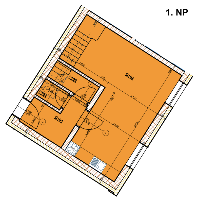 Dům 1 - byt C mezonet 3+kk 70,8 m2