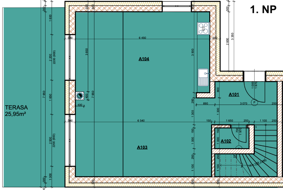 Dům 2 - byt A mezonet 5+1 - 124,54 m2