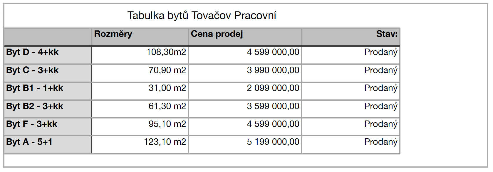 Kompletní informace jako např. rozměry či dispozice mají informační charakter a nejsou nijak smluvně vázané. Až na základě sml. o sml. budoucí bude dána přílohou prohlášení vlastníka, kde bude vše přesně specifikováno.