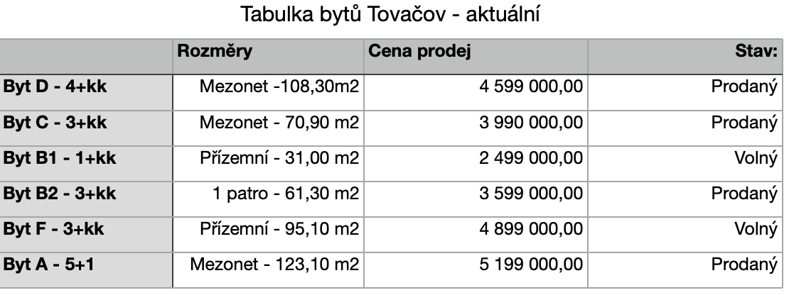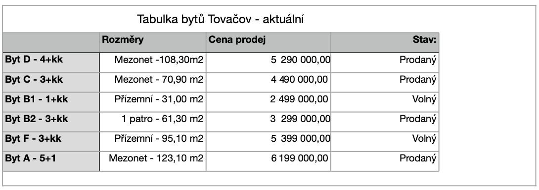 Kompletní informace jako např. rozměry či dispozice mají informační charakter a nejsou nijak smluvně vázané. Až na základě sml. o sml. budoucí bude dána přílohou prohlášení vlastníka, kde bude vše přesně specifikováno.